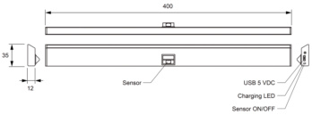 Lieferumfang | 1 x Sensorleuchte mit eingebautem Lithium Ionen Akku, 1 x Magnetstreifen zur Befestigung |