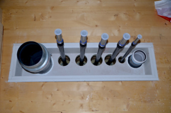 | In ceilings, minimum thickness 150 mm | Wood, concrete, fire resistance class ≤ F 90 |